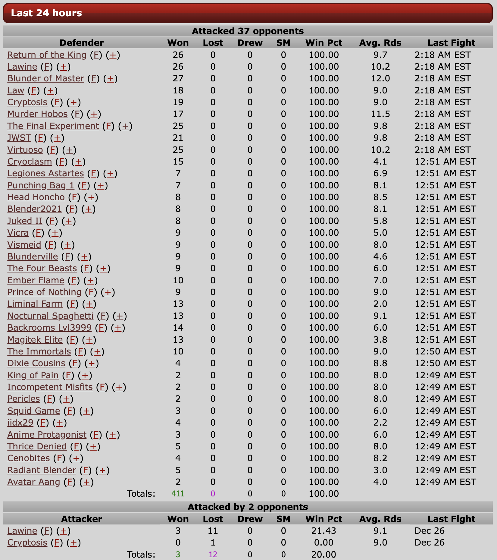 24 hours battle log: