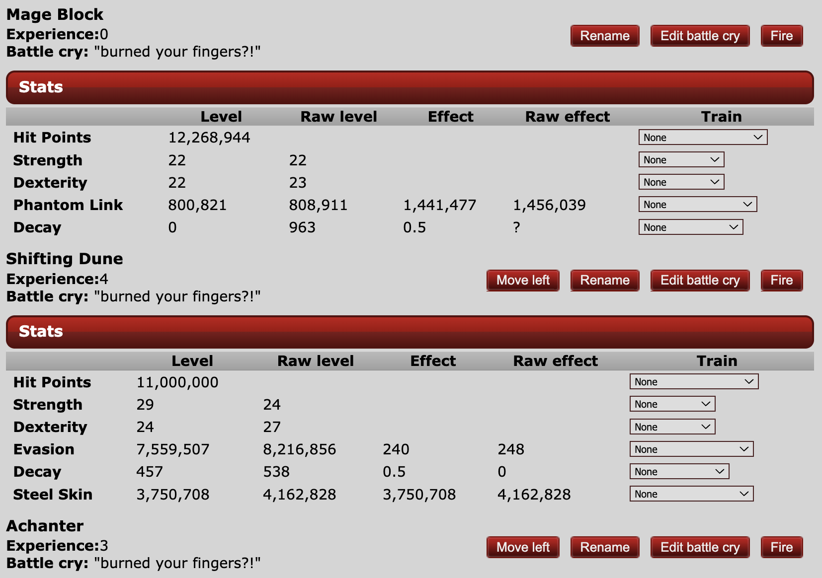 | Name | Remaining HP | PR |